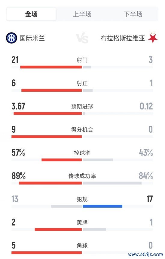 碾压!国米3-0布拉格斯拉维亚:射门21-3,射正6-1,控球57%-43%
