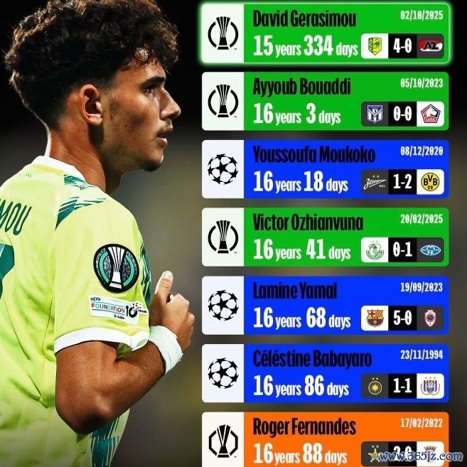 塞浦路斯AEK拉纳卡小将大卫-格拉西莫(David Gerasimou)日前亮相欧协联,刷新了欧战最年青出场记载。格拉西莫降生于2009年11月,是一位“准10后”。10后球员,很快就要来了。