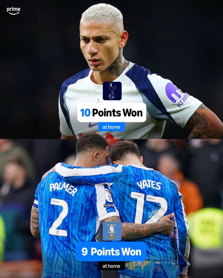 据媒体统计,热刺本比联赛季本场对抗赛仅拿到10分,在英格兰前四级别足球锦标赛季的92支队伍中,只有谢周三本比联赛季的本场对抗赛积分(9分)少于热刺。