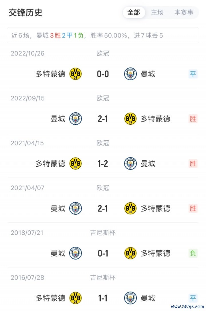 曼城欧冠2胜1平积7分,联赛6胜1平3负积19分位居英超第二,各项赛事两连胜;多特欧冠雷同2胜1平积7分,联赛6胜2平1负积20分暂位德甲第三,各项赛事贯穿4场不败。曼城对阵多特已贯穿4场不败(3胜1平)。