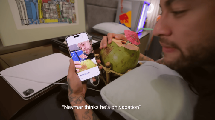 “啊,这是个纸伞。看看他们在我家周围做的事情。你觉得是我让他们做的吗?把纸伞插在稻草周围?如果我发这张照片,人们会评论:“内马尔以为自己是在度假。”说真的,我很难过,你知道吗?看到有人就是不喜欢我,你知道吗?我不能犯错,我不能。但我已经犯了很多错了。我已经犯过错了。就是这样。你必须谦逊并承认自己的错误。这是人之常情。你看,我34岁了,已经犯了很多错,而且以后还会犯更多错。所以你跟着看这个节目很好,听听我要说的真话。还有一件事,我不会再闭嘴了。你们最好小心点!完全没有过滤。我想到什么就说什么。”