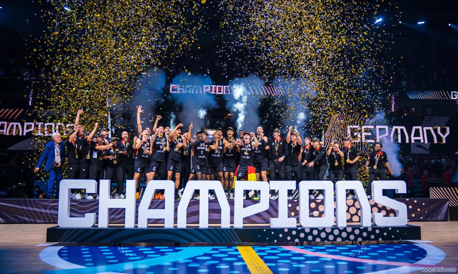 2025年男篮欧锦赛决赛,德国队对阵土耳其队,最终德国队88-83逆转打败土耳其队、队史第2冠,这一刻他们恭候了32年:要知说念,德国队上一次夺冠还是32年前的事情了!全队昂然庆祝,此外,施罗德拿到了MVP。