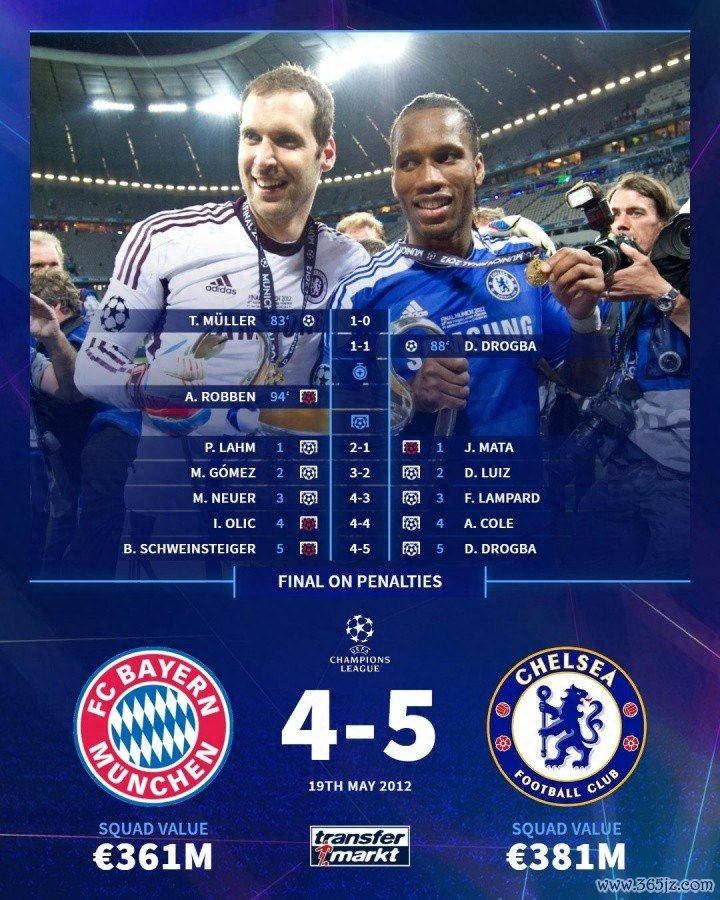 通宵谁将取胜? 德转回来12年欧冠决赛两边气势, 切尔西安联夺冠