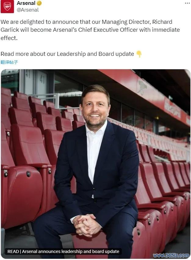 官方:阿森纳秘书俱乐部原总司理理查德-加里克被提升为了CEO。