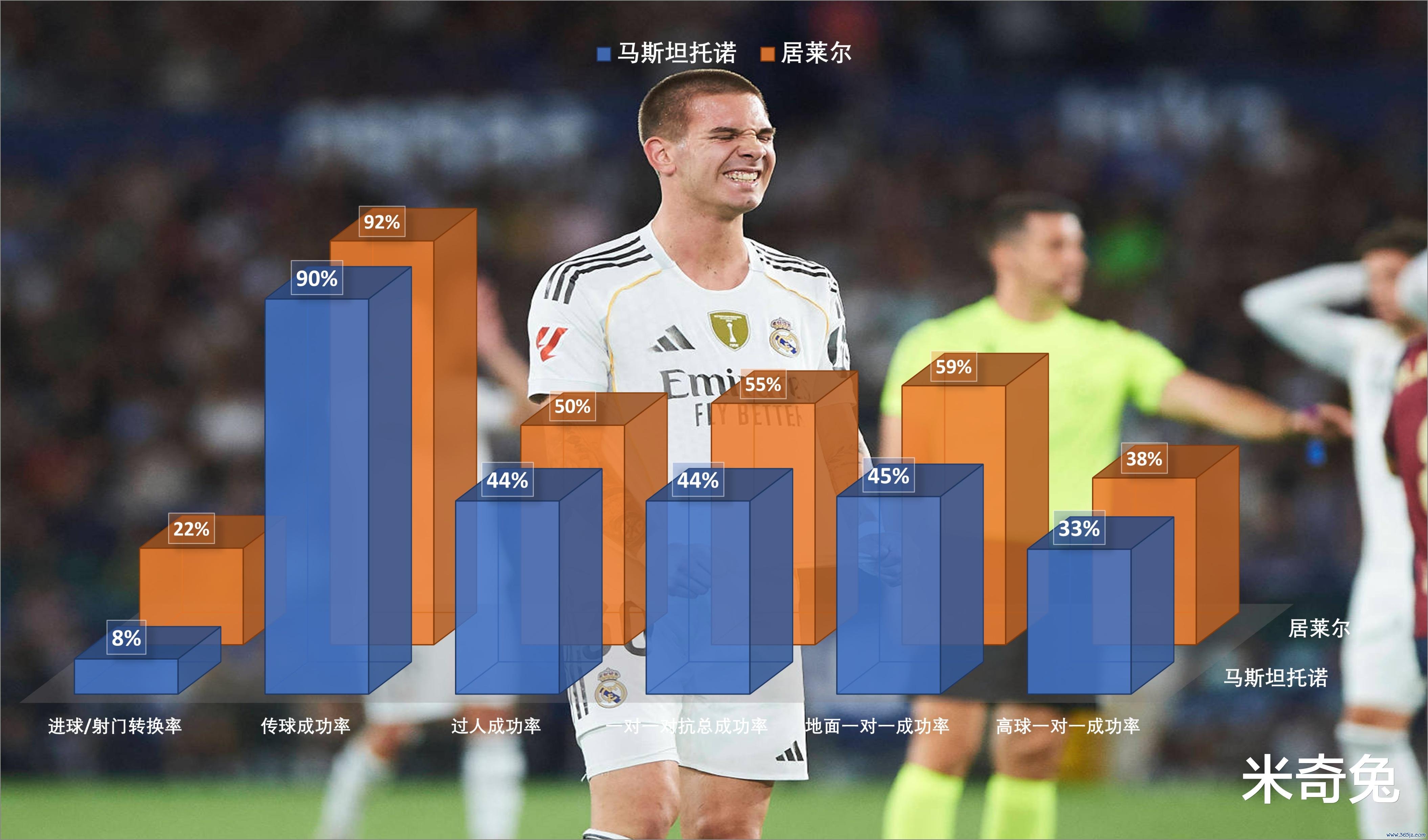 毕竟中场同期摒弃居莱尔和马斯坦托诺,他俩齐有一定的丢球比例,同期并不以叛逆见长。天然马斯坦托诺积极性很高,却并不是确实的中场。
