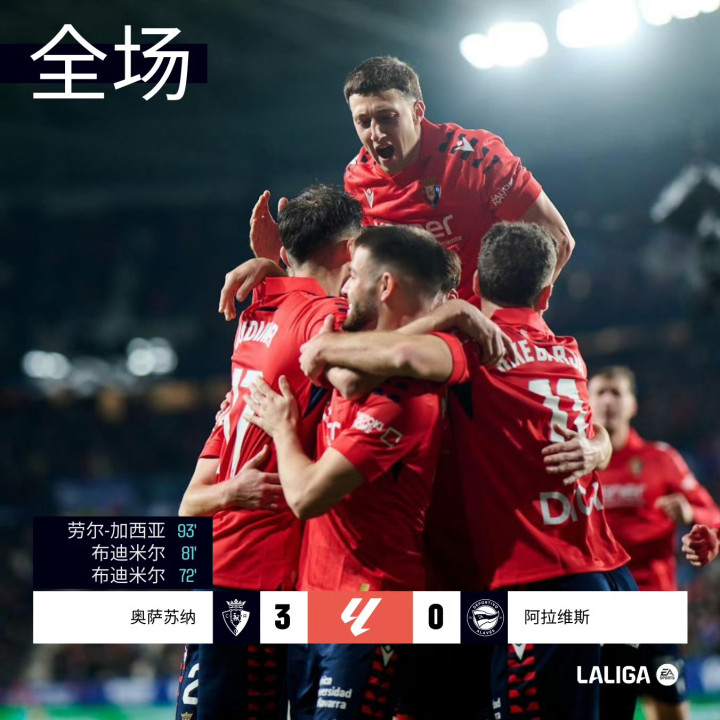 西甲 奥萨苏纳 3-0 阿拉维斯