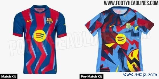 这款第四球衣贪图引东说念主把稳,如着名足球装备网站FootyHeadlines所展示,它将巴萨的红蓝色与天蓝色搀杂,并配以不法例的线条,冲破了传统的巴萨球衣贪图,统共这些细节皆辅以黄色的耐克Logo和队徽。
