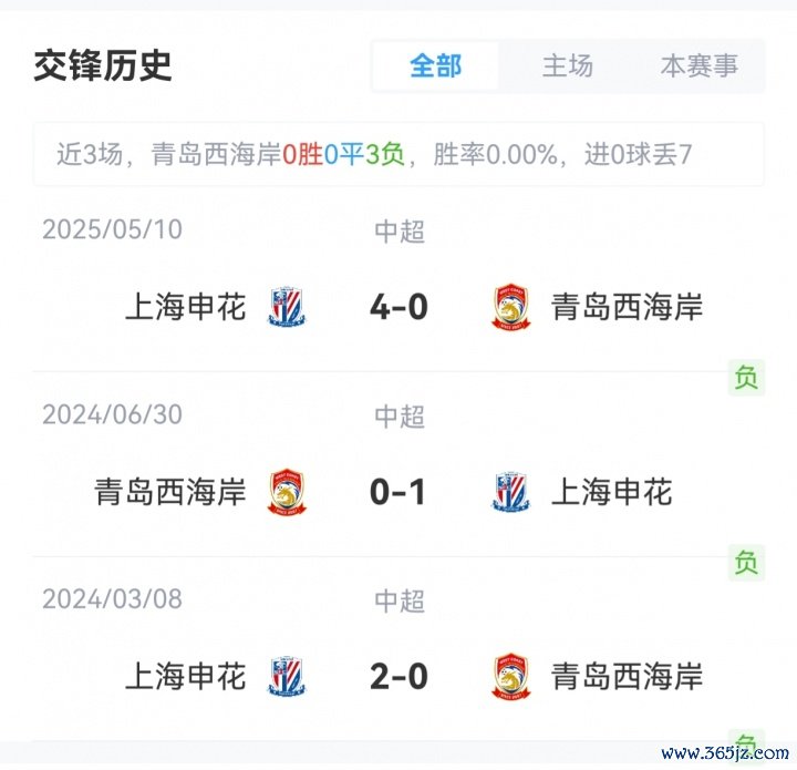 青岛西海岸9胜9平8负积36分,名次中超第8;上海申花16胜6平4负积54分,名次中超第3。