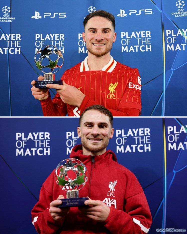 当天利物浦官推晒出了麦卡两次被评为全场最好的相片,并配文写说念:“从2024到2025,‘背靠背’与皇马的两次交手,麦卡均当选全场最好。”