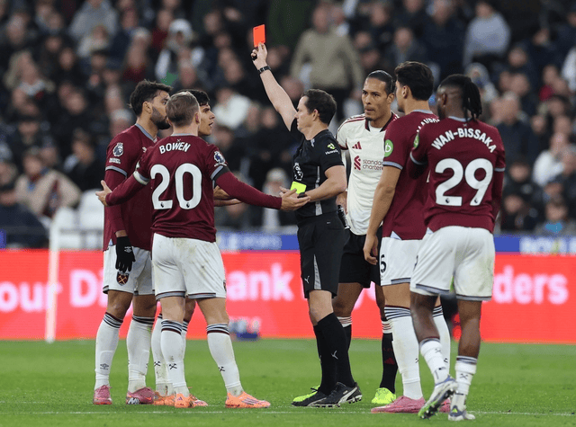虎扑12月01日讯英超第13轮比赛,西汉姆联主场0-2不敌利物浦。西汉姆中场帕奎塔在比赛中因为向裁判衔恨赓续吃到两张黄牌被罚离场。