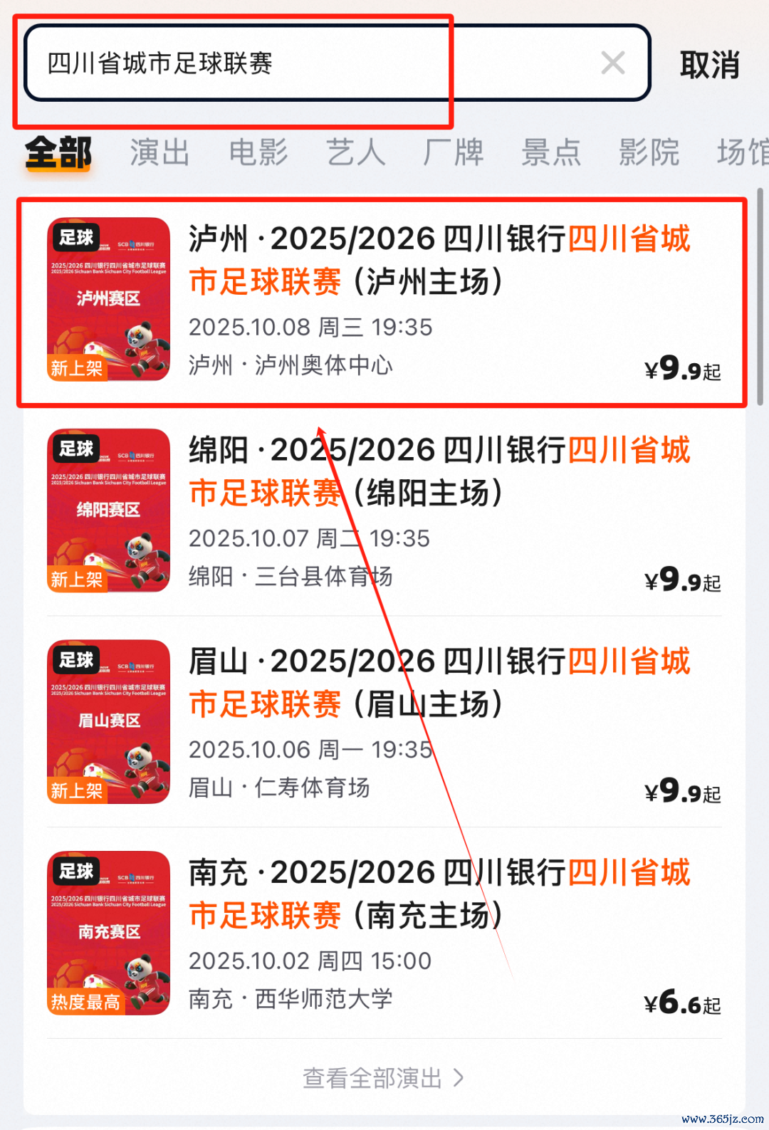 怒放浏览器/微信小要领搜索“大麦网”,或下载“大麦”app,在首页搜索栏输入“四川省城市足球联赛”,即可出现关联赛事场次信息。