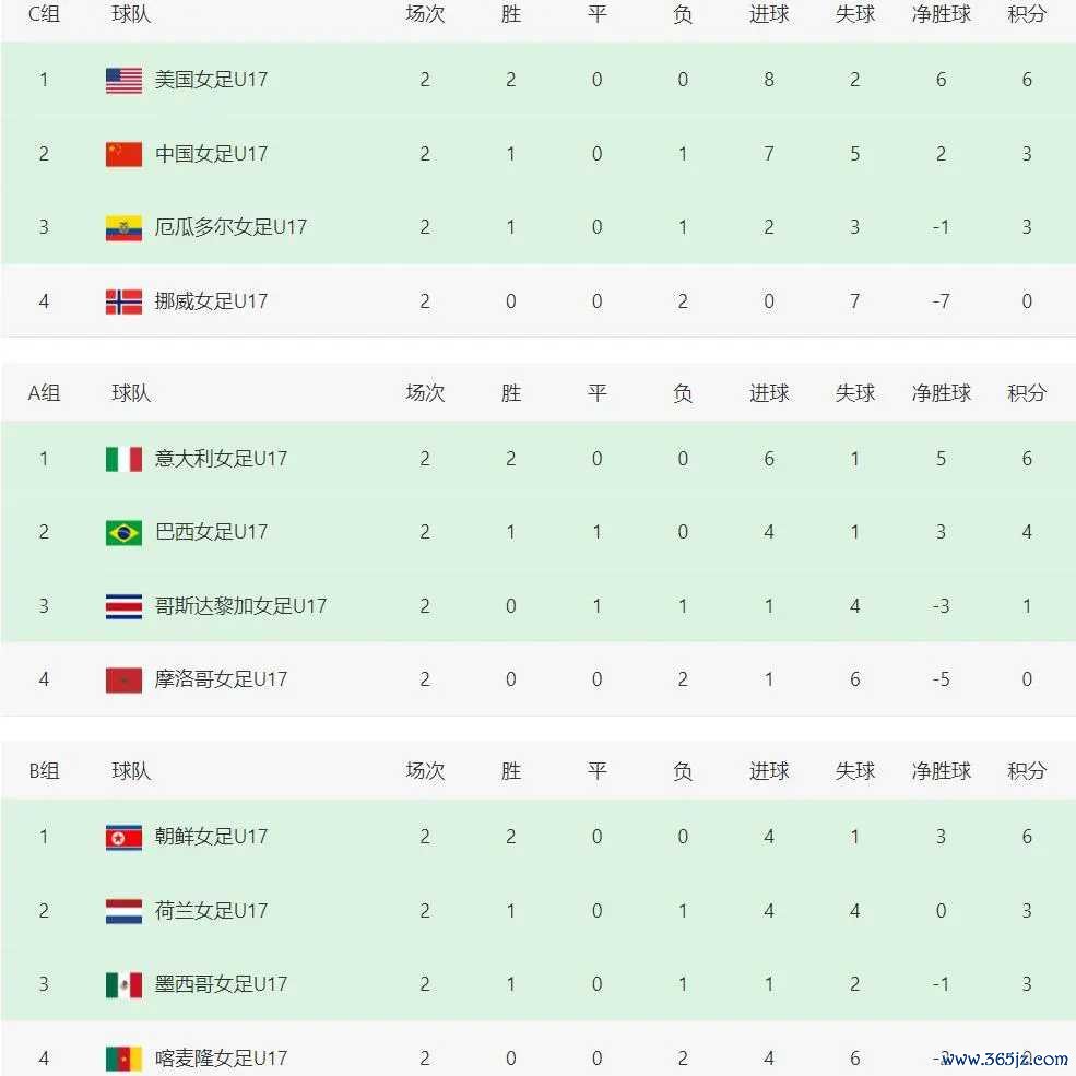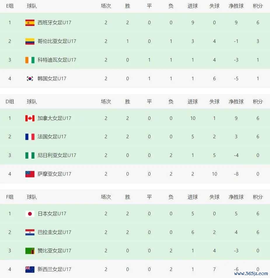 但净胜球上,D组的尼日利亚-4个,萨摩亚女足则是-8个,E组的赞比亚-3个,新西兰女足-6个。