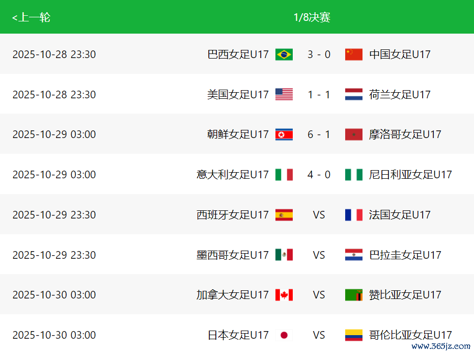 北京技能10月29日凌晨,新一届U17女足宇宙杯淘汰赛阶段,起原抑制四场1/8决赛,中国女足0-3输给巴西女足,好意思国女足7-8不敌荷兰女足,朝鲜女足6-1狂胜摩洛哥女足,意大利女足4-0大捷尼日利亚女足,演出放纵今夜。
